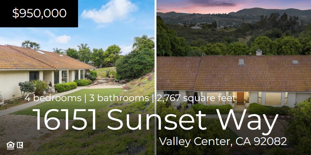 Welcome to 16151 Sunset Way—your private retreat nestled in the heart of Valley Center. This custom-built, single-story home offers 2,762 sq ft of spacious living, featuring 4 generously sized bedrooms, 3 full bathrooms, and a 3-car garage with ample storage throughout. Built in 1990 and beautifully maintained, the home boasts large formal living and dining rooms, perfect for entertaining, while the open-concept kitchen and family room create a warm, inviting space for everyday living. Lots of space on the property to store your toys and even expand the living spaces! Set on 2.1 acres of usable land, the property offers abundant possibilities—from adding a pool or guest house to creating your dream garden or hobby farm. Enjoy the charm of mature orange trees, plenty of room to roam, and the peace of total privacy. Paid solar adds energy efficiency, making this home as practical as it is picturesque. Don’t miss this rare opportunity to create your own oasis in one of Valley Center’s most serene and scenic locations.