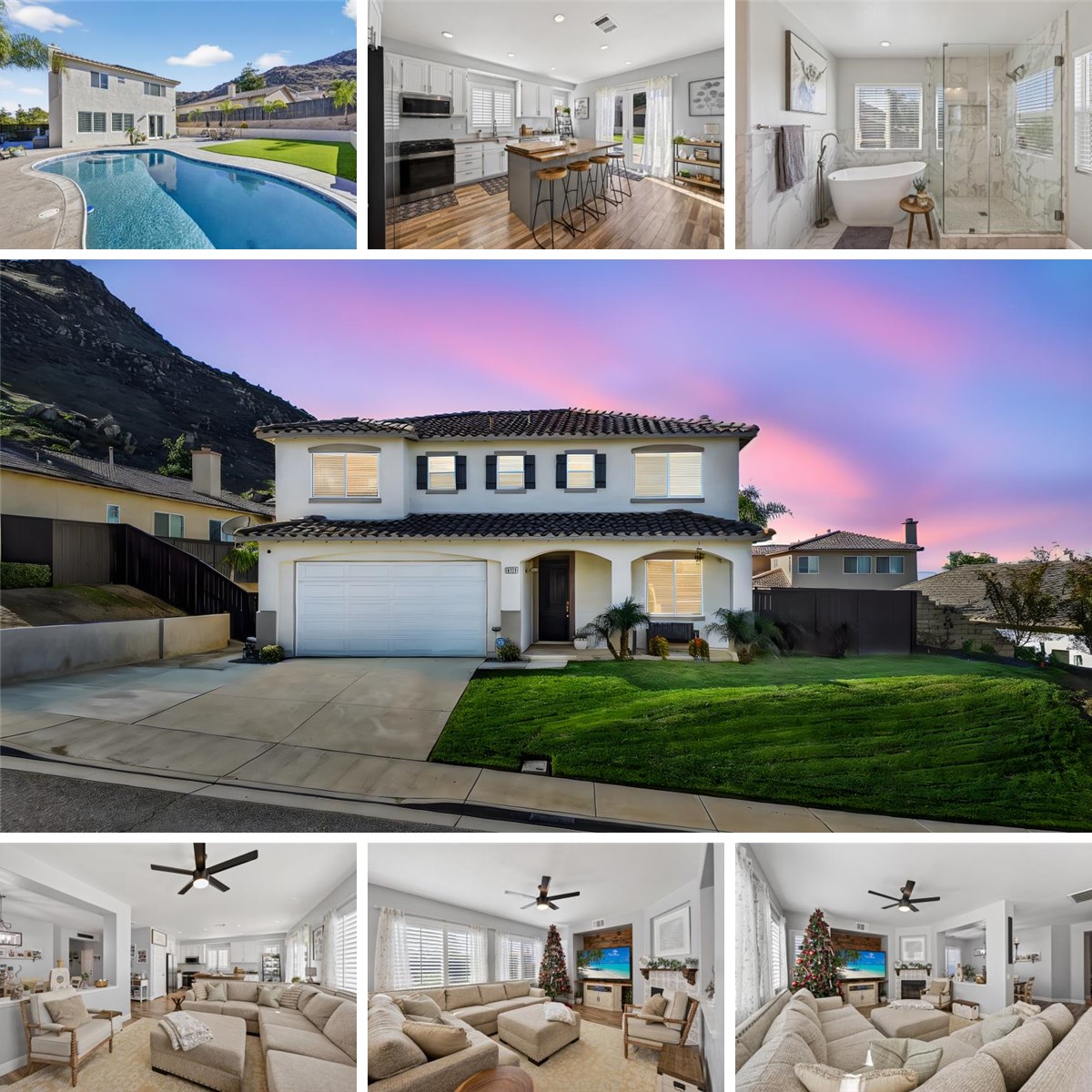 Welcome to a truly impressive home that shows like a model, thoughtfully updated, beautifully maintained, and designed for modern living. This spacious 4 bedroom, 3 bath residence offers an ideal layout with one bedroom and full updated bathroom on the main floor, perfect for guests or multigenerational living. Additional benefits include very low special assessments of approximately 290 a year and no HOA. Step inside to an inviting open concept family room and kitchen, featuring laminate flooring throughout, a generous walk in pantry, and a separate dining area. Natural light fills the main level, enhanced by elegant shutters on the windows and a beautiful French door leading to the backyard. Upstairs, retreat to the stunning primary suite, complete with a huge walk in closet and a beautifully updated primary bath for spa like relaxation. The additional bedrooms are all oversized, offering comfort and flexibility for any lifestyle. A spacious loft adds even more room for a home office, playroom, media area, or whatever you envision. Enjoy outdoor living at its best in the private backyard, featuring artificial turf, stamped concrete, an above ground spa, and a recently replastered pool with new tile, all ready for year round enjoyment. The wide 3 car tandem garage and extended 3 car driveway provide plenty of parking and storage space. Plus, the paid off solar panels offer energy savings from day one. With appliances only a few months old and countless thoughtful updates, this home is truly move in ready. Come experience the style, comfort, and value this property has to offer, you will not want to miss it!