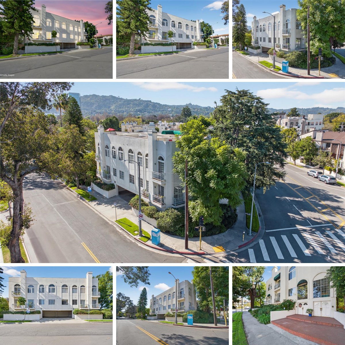 Live close to work. Live above it all. This bright, private, oversized Toluca Lake townhome is a rare find—especially if you work in film, TV, or the studios nearby. Jaw-dropping views, and an unbeatable location in the heart of the village, this home blends comfort, creativity, and convenience. This 1,908 sq ft corner unit sits in one of Toluca Lake’s most sought-after pockets—an area long loved by Hollywood legends like Bob Hope, Frank Sinatra, Ron Howard and Steve Carell. It’s quiet, tucked away, and still just minutes from Universal, Warner Bros., Disney, and NBCUniversal. Let’s talk about the real show-stopper: your private rooftop terrace. With 360° views of Universal Studios, the mountains, and city lights, this is your go-to spot for decompressing after a long shoot day, hosting friends, or just watching the sunset with your favorite beverage. The home lives more like a single-family house, with direct access from your private 2-car garage, in-unit laundry, and an approx. 200 sq ft bonus/storage room—perfect for gear, bikes, holiday storage, etc. Inside, natural light pours in from oversized windows, making every room feel open and inviting. The spacious living room features hardwood floors, a cozy gas fireplace, and two large sliding doors that open to your own private balconies—ideal for fresh air between Zoom calls. The formal dining area flows perfectly from the living space and works beautifully as a home office or creative workspace, with built-ins. A guest bath is conveniently nearby. The kitchen is warm and functional, featuring custom tile floors, glass-front cabinets, a walk-in pantry, and plantation shutters—perfect for quiet mornings before call time or winding down late nights. Upstairs, the primary suite is a true retreat with soaring 11-ft ceilings, a second gas fireplace, treetop views, its own private balcony, a large walk-in closet, and a bright spa-like bathroom with both a walk-in shower and soaking tub. Across the hall, the second bedroom functions as a junior suite, also with 11-ft ceilings, walk-in closet, great natural light, and its own full bathroom—perfect for guests or roommates. The intimate 4-unit building offers privacy, a low HOA, and walkability to Trader Joe’s, Gelson’s, great restaurants, and major movie studios. If you want space, privacy, light, and a location that truly works for today's lifestyle, this is it. Rare, relaxed, and quietly impressive—just like Toluca Lake itself.
