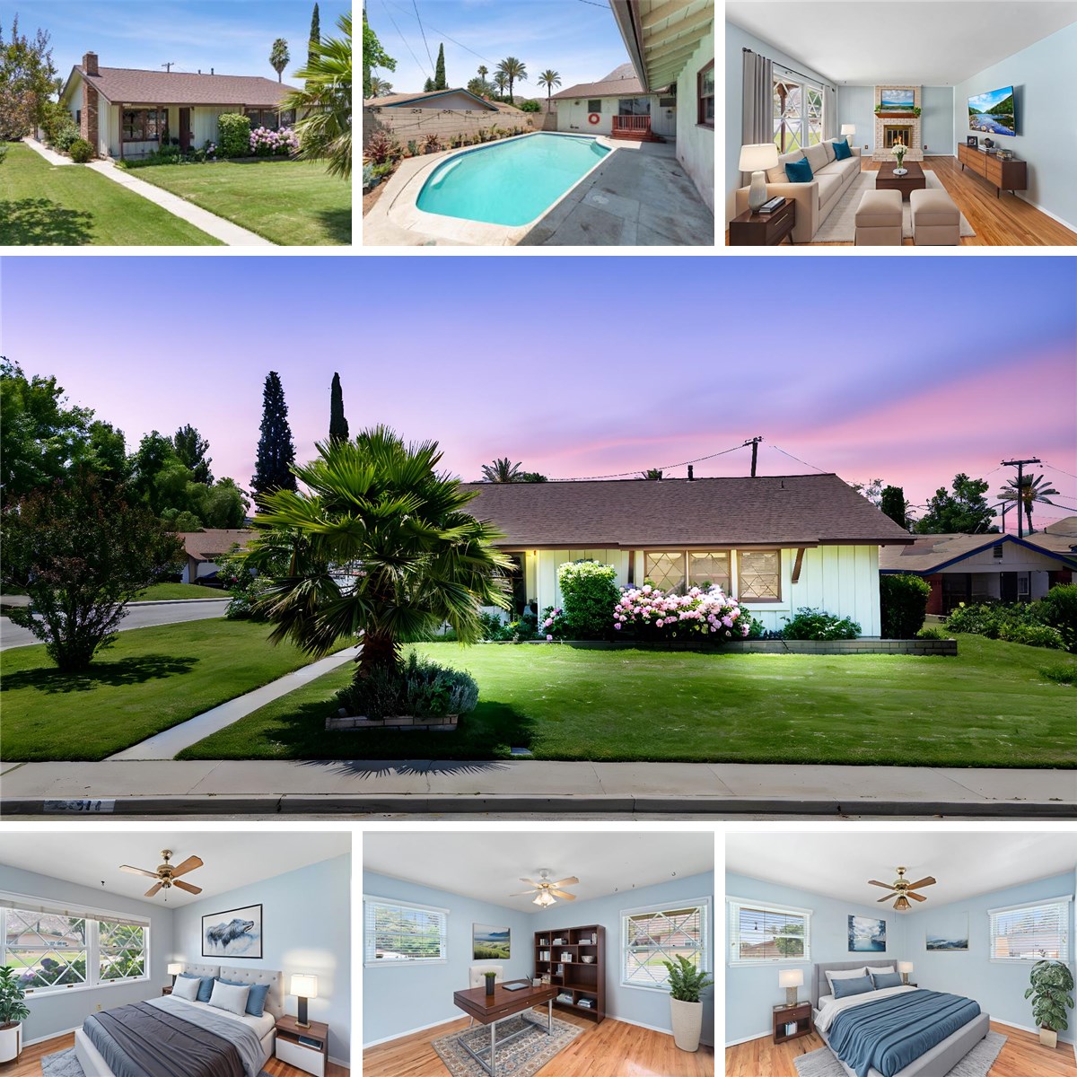 This charming single-story home at 514 Massachusetts Ave in Riverside offers classic mid-century appeal on a spacious 8,276 sq ft corner lot. With 3 bedrooms and 2 bathrooms across approximately 1,420 sq ft, the home features original hardwood floors, a brick fireplace, and vintage diamond-pane windows that add warmth and character. The bright living and dining areas flow seamlessly into a spacious kitchen equipped with oak cabinets, ample counter space, and views of the backyard—perfect for family living or entertaining. Recent upgrades include refinished hardwood floors, central HVAC, and a newly plastered pool, making the outdoor space ideal for summer relaxation. A detached garage offers potential for an ADU conversion, providing added flexibility for extended family or rental income. Located just minutes from UC Riverside, parks, trails, and major freeways, this property is ideal for families, university professionals, or investors looking for a well-located and versatile home with lasting charm.