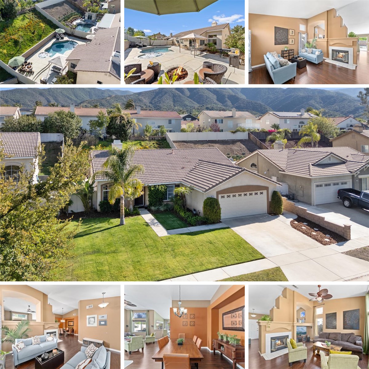 SINGLE STORY | SALTWATER POOL + SPA | NO HOA | ENTERTAINER’S BACKYARD | Welcome to this stunning single-story home nestled in the heart of Corona, where beauty, comfort, and functionality meet. From the moment you arrive, you’ll be captivated by the charming curb appeal and lush landscaping. Step inside and experience a bright, spacious interior filled with natural light, soaring ceilings, and large windows that create an inviting and open atmosphere. The formal living room, perfect for entertaining, features a cozy double-sided fireplace shared with the adjacent family room. Host memorable dinners in the elegant dining area or enjoy casual gatherings in the open-concept family room seamlessly connected to the gourmet kitchen. The chef’s kitchen boasts granite countertops, a custom backsplash, stainless steel appliances, a full-wall pantry, and an island with breakfast bar seating, complemented by a cheerful breakfast nook. Retreat to the luxurious primary ensuite bedroom offering serene backyard views, a double wall closet, and a walk-in closet. The spa-inspired ensuite bathroom features dual vanities, a deep soaking tub, and a walk-in shower. Bedrooms 2 and 3 are generously sized, ideal for family, guests, or a home office. A separate laundry room adds convenience to everyday living. The true highlight of this home is the spectacular backyard oasis. Designed for entertaining, it features a heated pool and spa, and cozy firepit + BBQ area with dedicated gas lines to both - all surrounded by meticulously landscaped grounds. The pool features upgraded PebbleSheen for a refined, textured finish and an in-pool seating area. Listen to the calming sounds of the waterfall as it flows from the spa into the shimmering pool, creating a serene and peaceful atmosphere. A custom, removable pool fence provides added safety for children or pets. Additional features include vinyl and wrought iron fencing, mango, orange, and lime fruit trees, and a side yard with durable artificial grass perfect for furry family members. Upgrades include recessed lighting, luxury waterproof plank wood flooring throughout, and a newer heater & air conditioner, ensuring year-round comfort. LOCATION: Quick access to 91, 91 Expressway, 71, 241 Toll, 15, highly rated schools, including Eisenhower Elementary & Santiago High School, parks, shopping & entertainment. This exceptional property offers everything you could want in a home — a perfect blend of elegance, comfort, and outdoor enjoyment.
